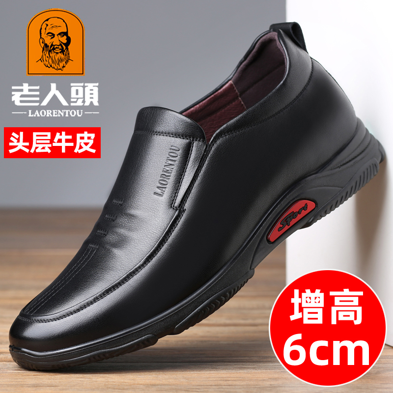 老人头皮鞋男真皮休闲男鞋隐形内增高皮鞋增高6cm小码透气男婚鞋