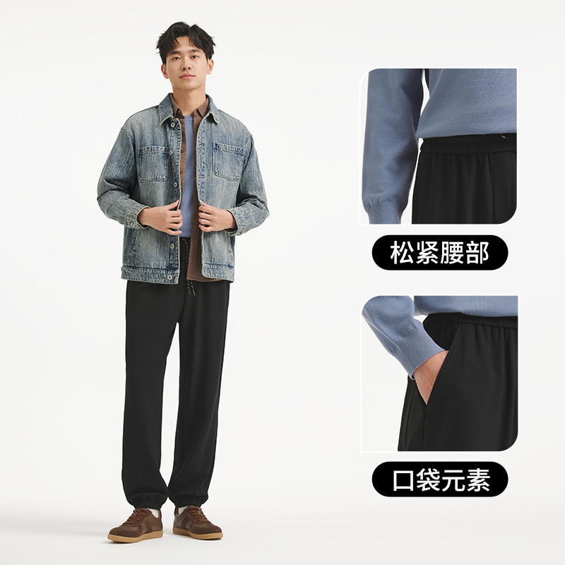 热风男士卫裤2025年秋季新款肌理休闲卫裤松紧腰宽松束脚通勤长裤