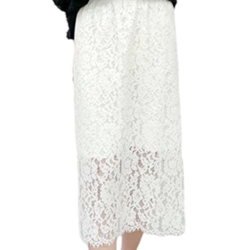 2025秋冬高腰大码黑白色蕾丝百搭半身裙开叉一步打底包臀中长裙