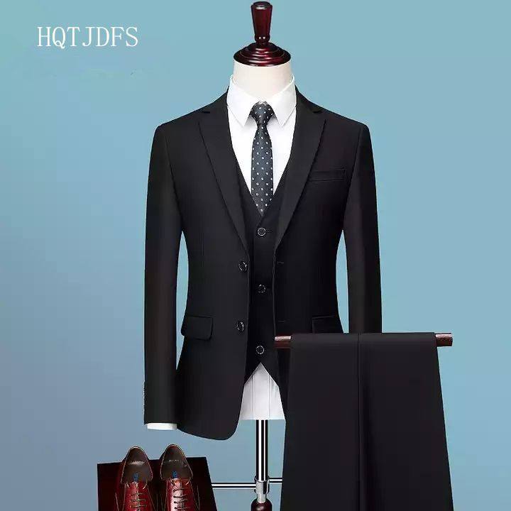 西服套装男士三件套商务职业正装男西装韩版修身结婚礼服伴郎新郎