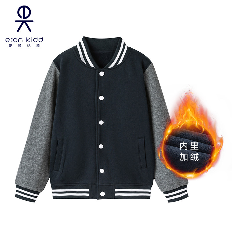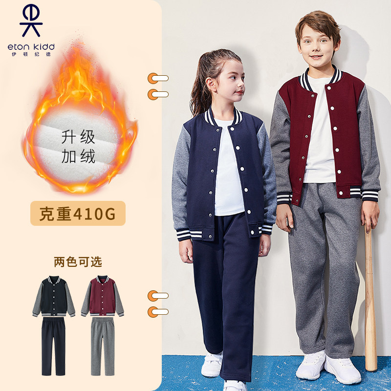 伊顿纪德秋冬新款学院风男女童加绒运动装儿童运动卫衣外套棒球服