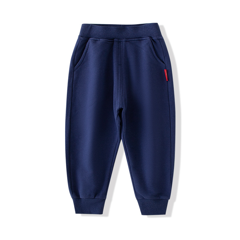男女童秋冬运动裤加厚校服裤纯棉儿童小学生男宝加厚藏青束脚卫裤