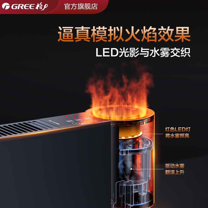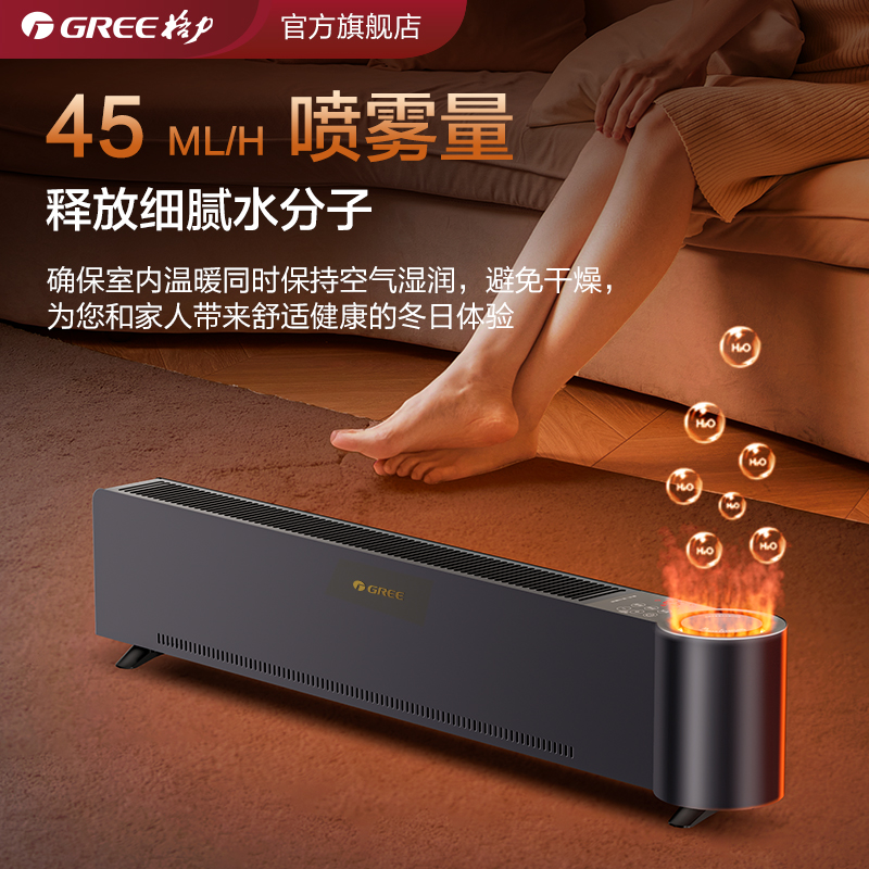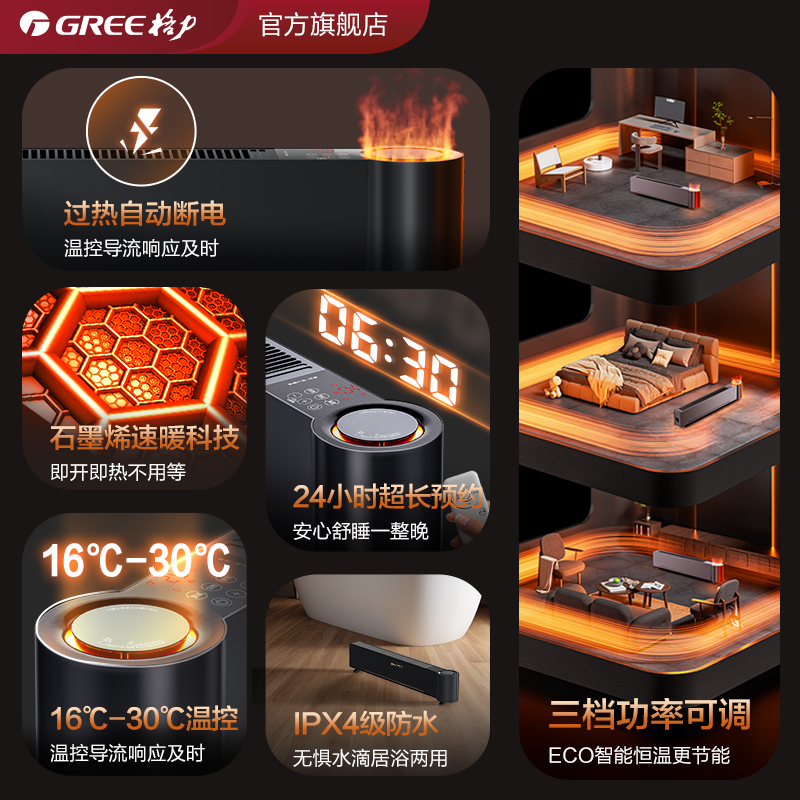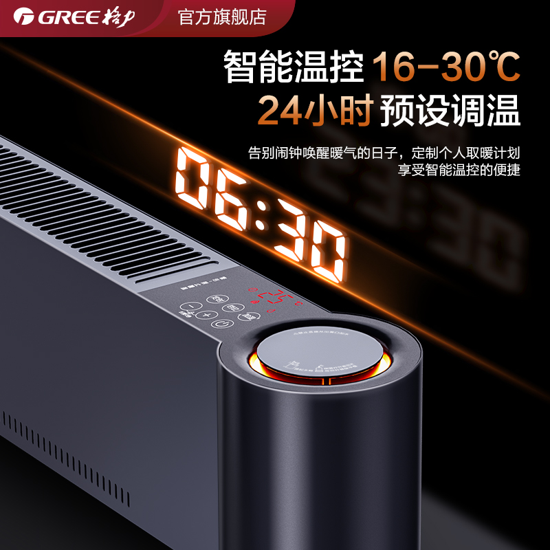 格力仿真火焰踢脚线取暖器石墨烯家用智能控温防水电暖器移动地暖