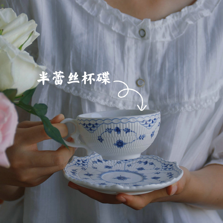 ZJ 法式浮雕全蕾丝花边唐草纹大容量餐具咖啡杯碟微波炉烤箱可用