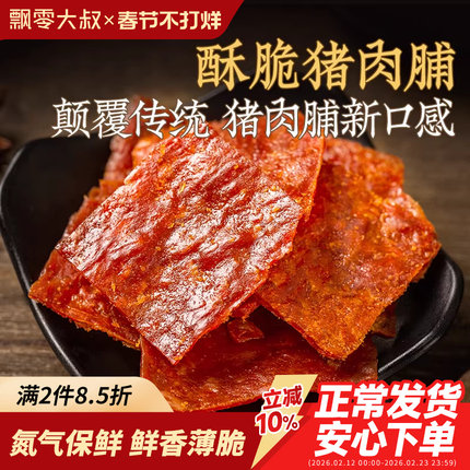 飘零大叔酥脆猪肉脯108g薄香脆片肉干靖江特产原味高蛋白零食烤肉