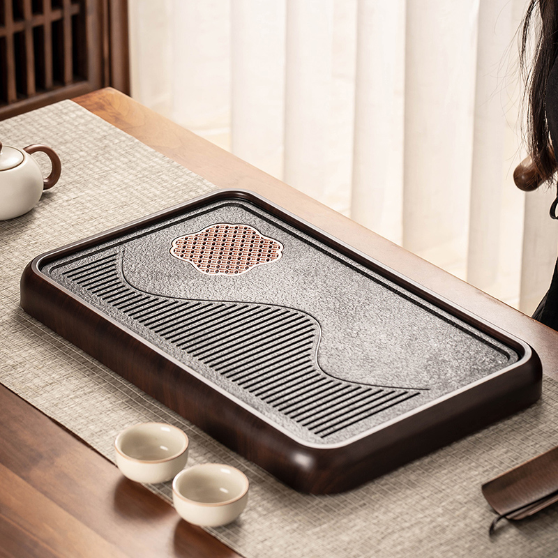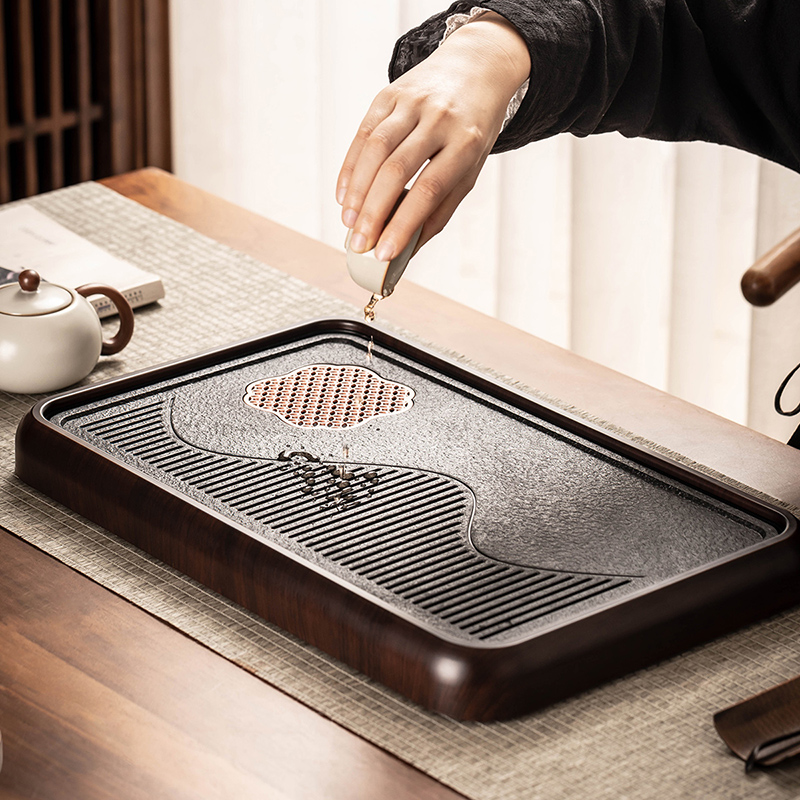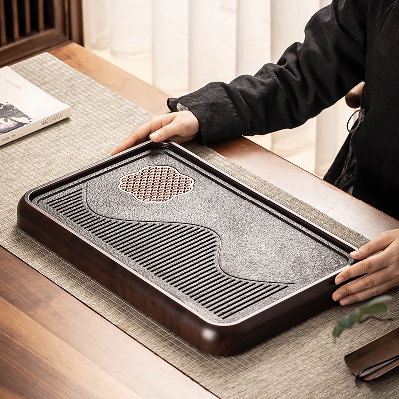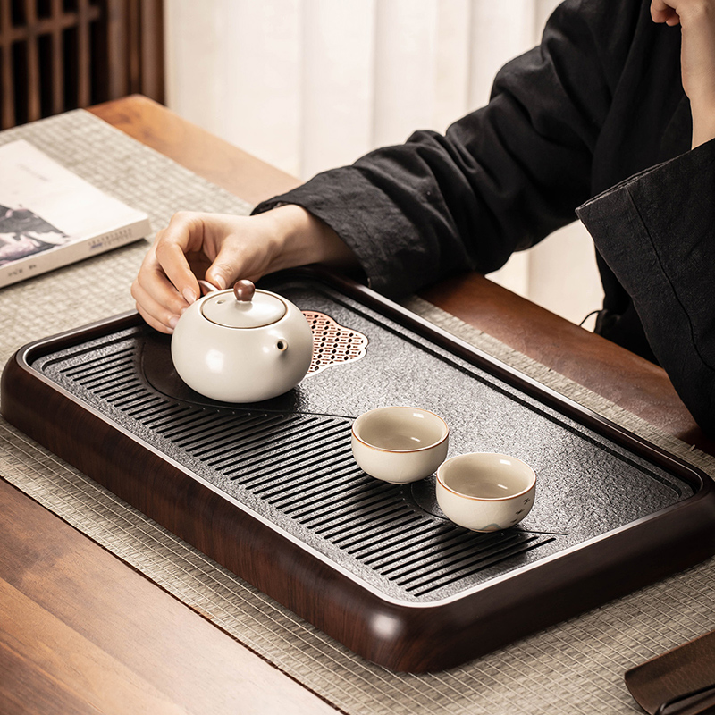 泥徒茶盘2024新款家用实木茶托盘蓄排双用石板干泡盘轻奢茶具茶台