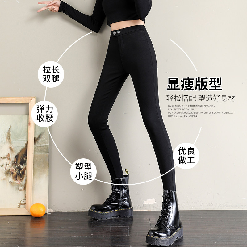 魔术黑色打底裤女外穿2025新款秋冬季加绒高腰弹力紧身小脚铅笔裤