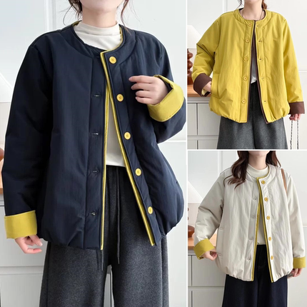 加肥加大码女装冬装新款胖mm2026长袖拼色女棉服高端圆领中年棉衣