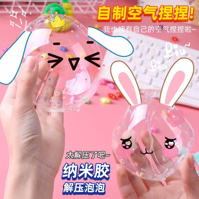 手工纳米胶捏捏乐吹泡泡儿童解压玩具空气捏捏双面胶自制水球解压