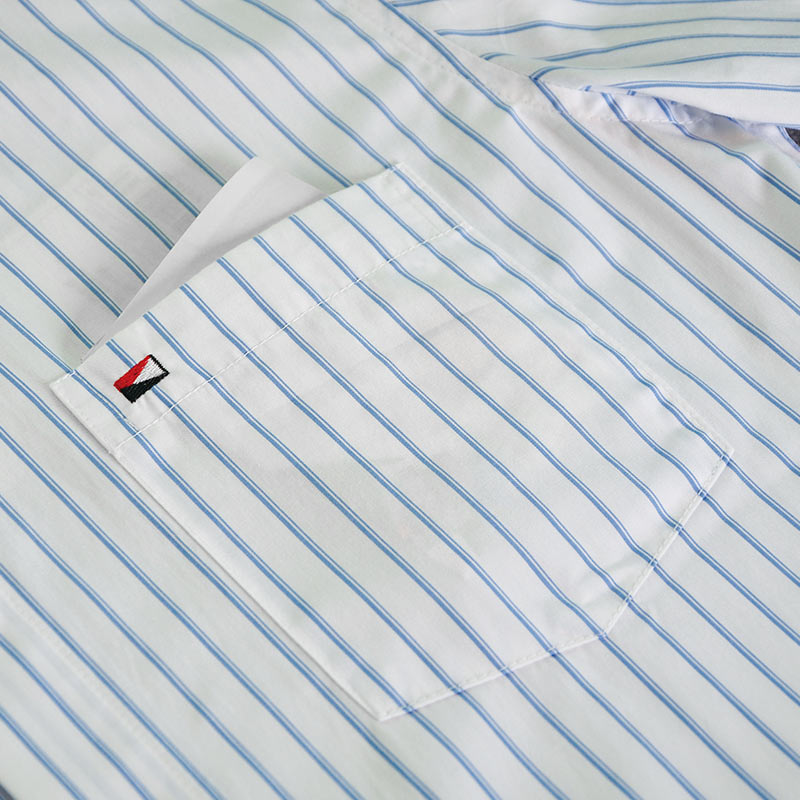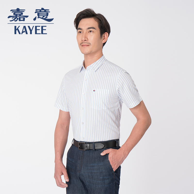 嘉意衬衣男士短袖修身休闲夏季冰丝凉感透气蓝白条纹衬衫薄A50012