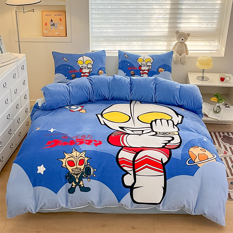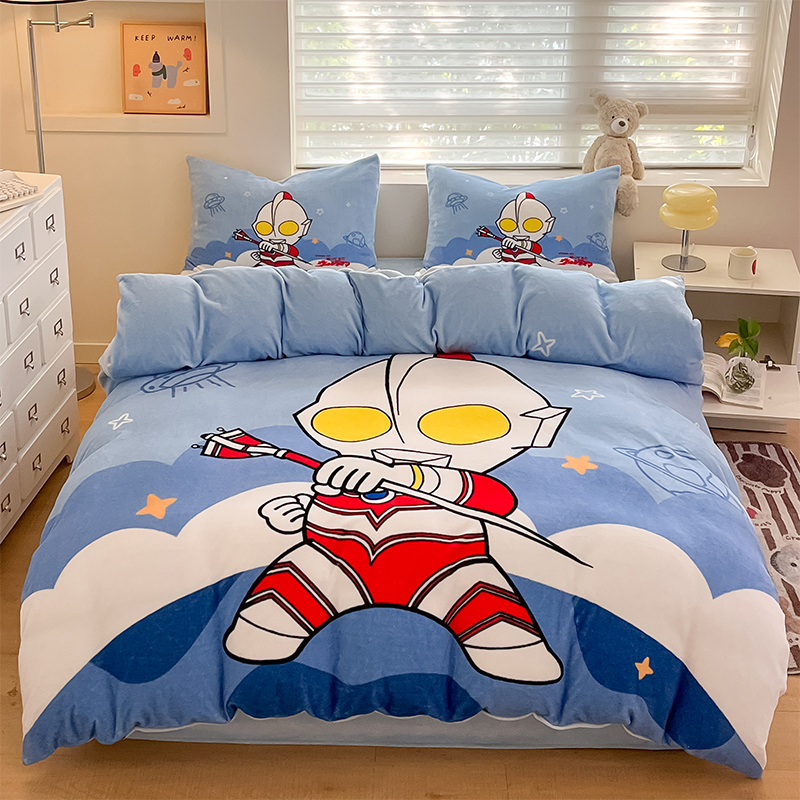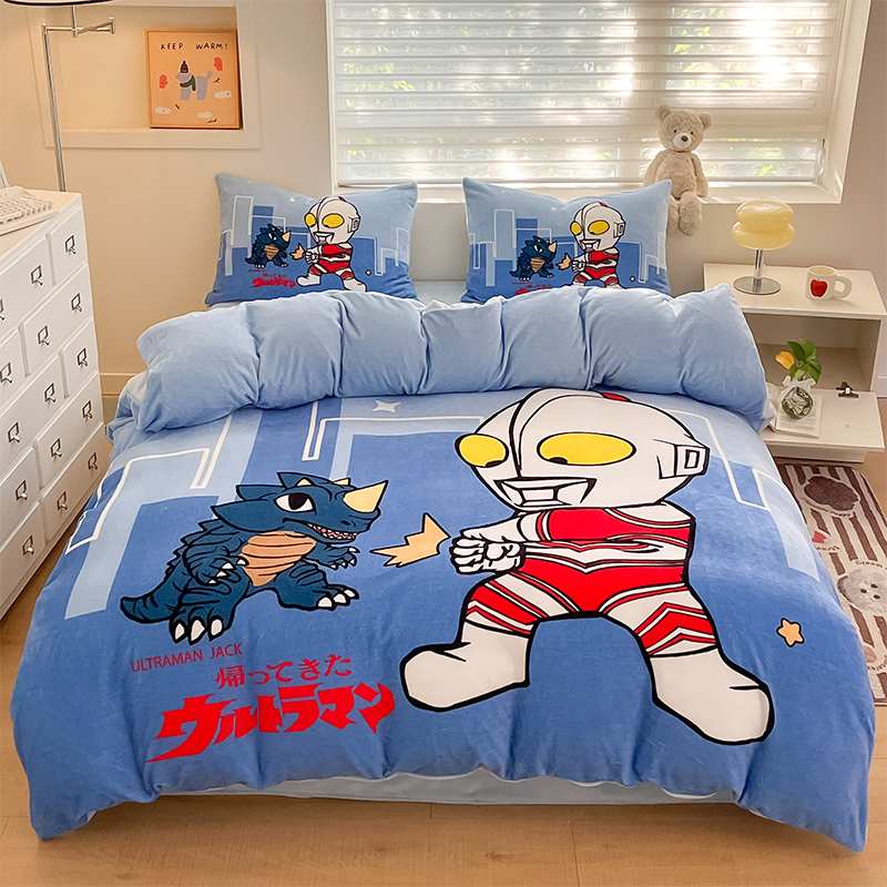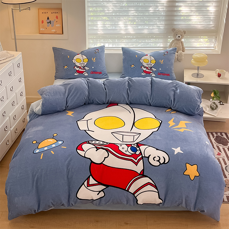 经典奥特曼冬季牛奶绒床上四件套法兰珊瑚绒被套床品单儿童三件套