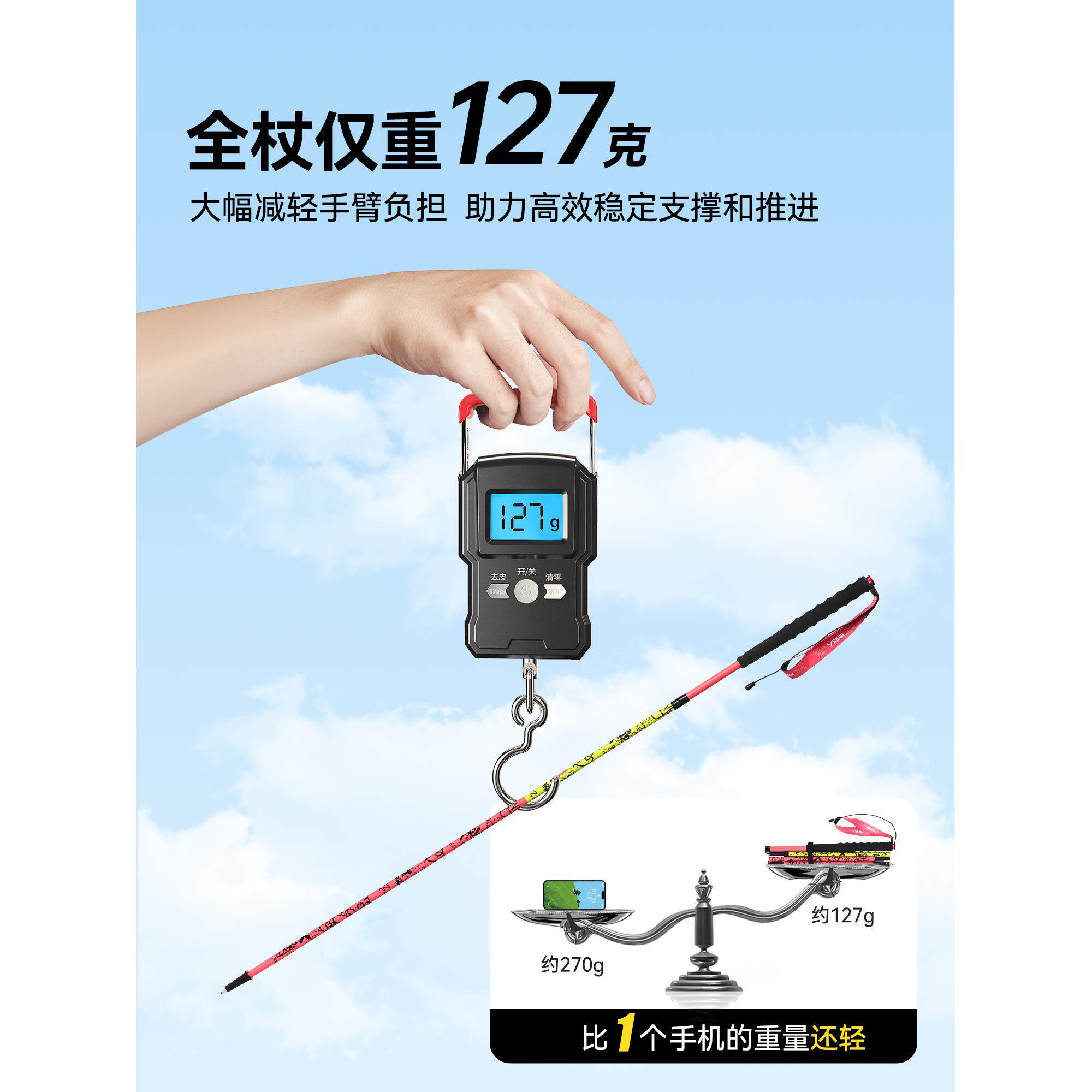 越野跑登山杖手杖专业户外爬山拐杖碳纤维轻便折叠款男女棍