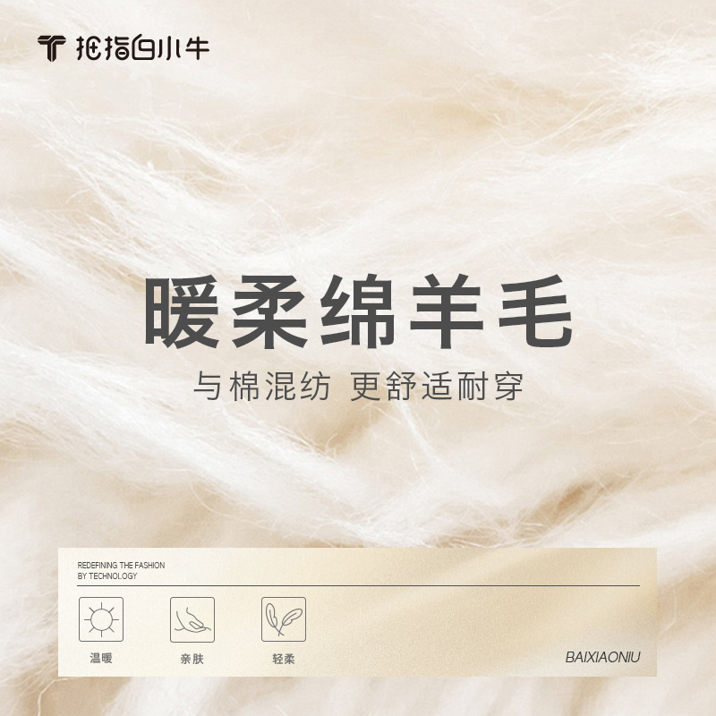 【暖柔绵羊毛】拇指白小T秋冬款男士直筒保暖直筒牛仔长裤