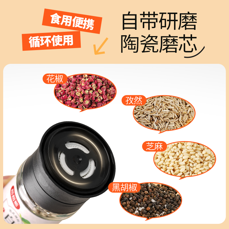 稻稻熊白胡椒粒50g*1非海南黑胡椒现磨牛排调味料带研磨器