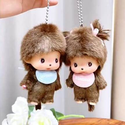 Monchhichi萌趣趣包包钥匙挂件基本围兜款情侣礼物夏威夷可爱娃娃