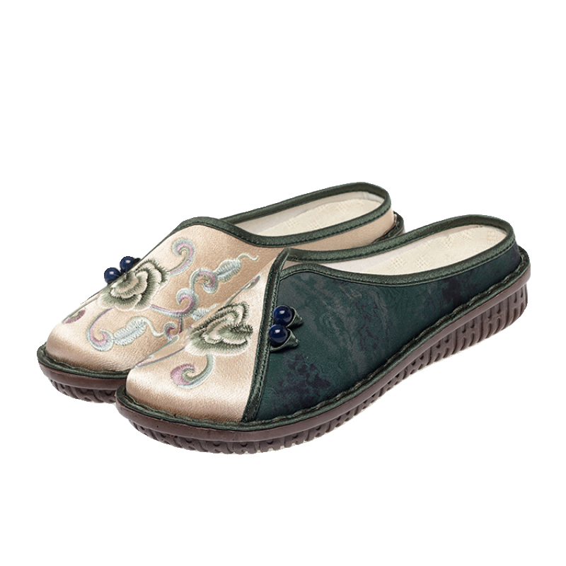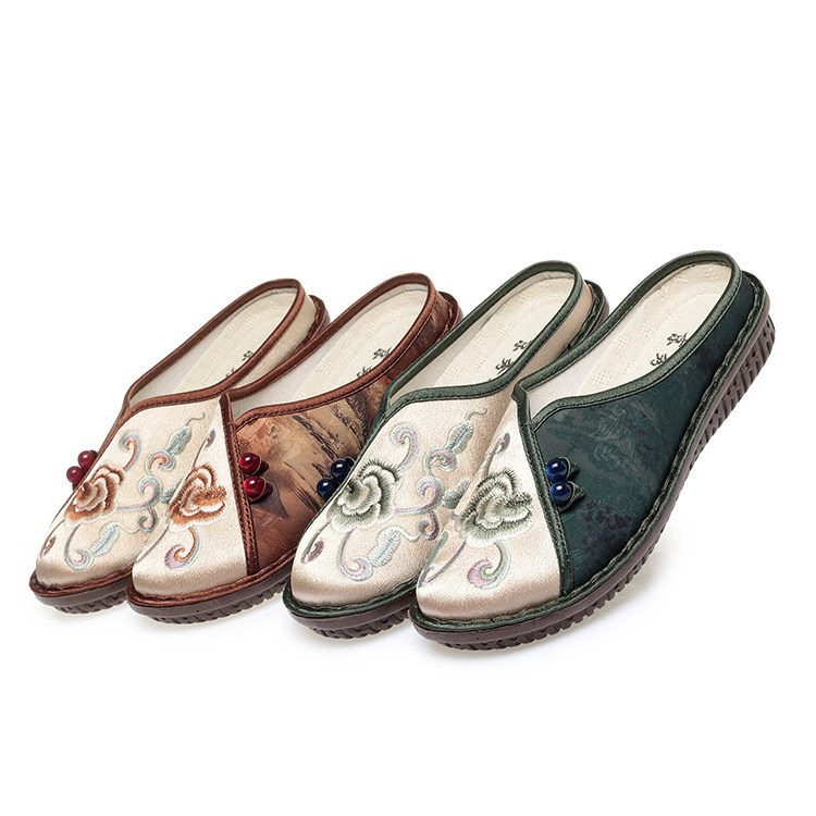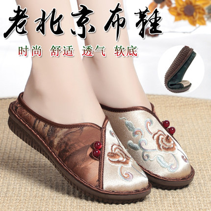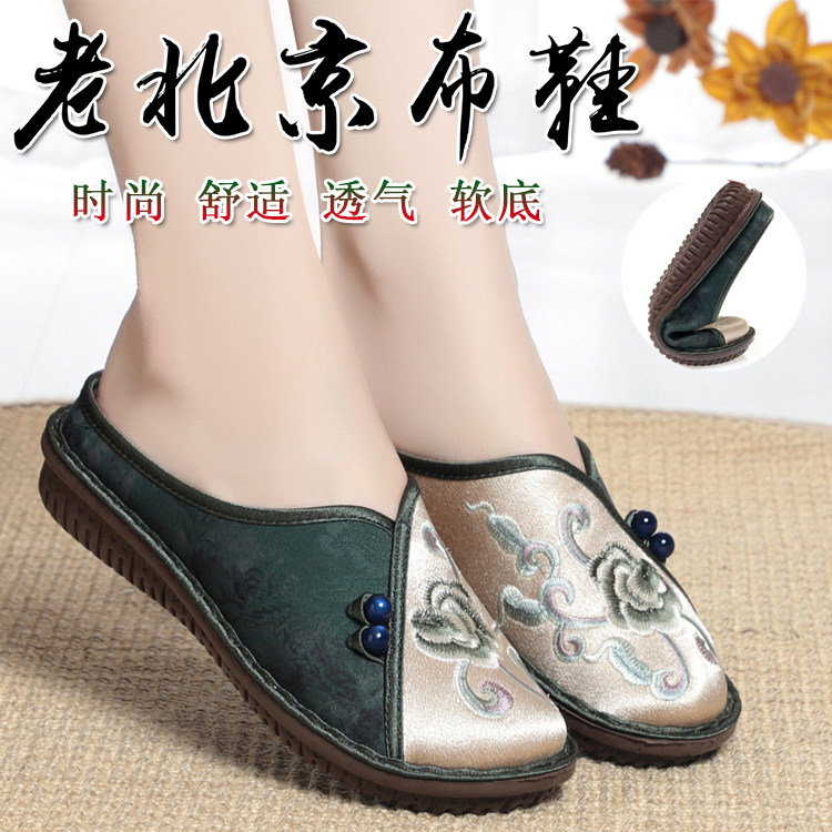 包头半拖鞋女2025新款春夏外穿防滑透气老北京布鞋无跟懒人一脚蹬