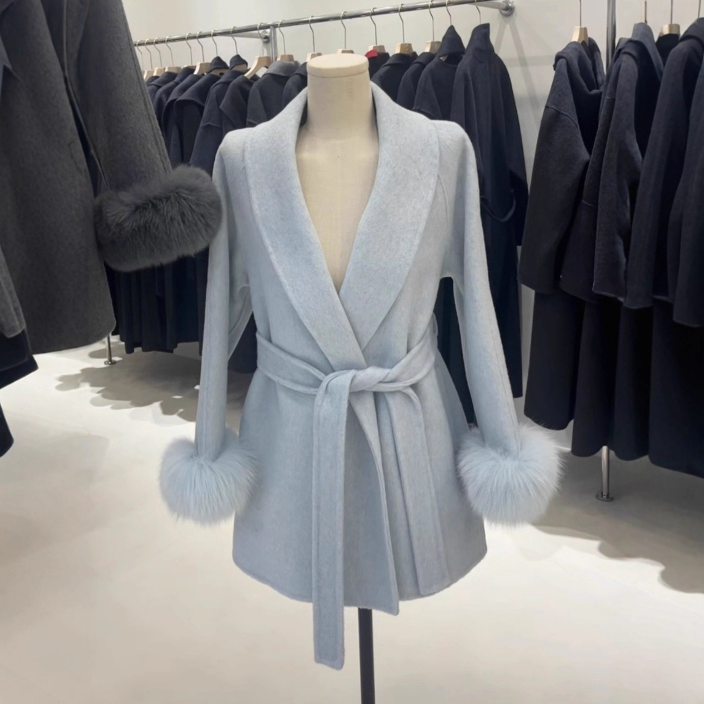 双面羊毛大衣女25秋冬中长款小个子可拆狐狸毛气质感毛呢外套