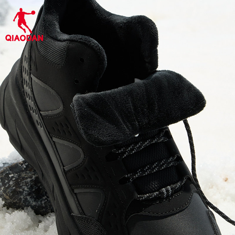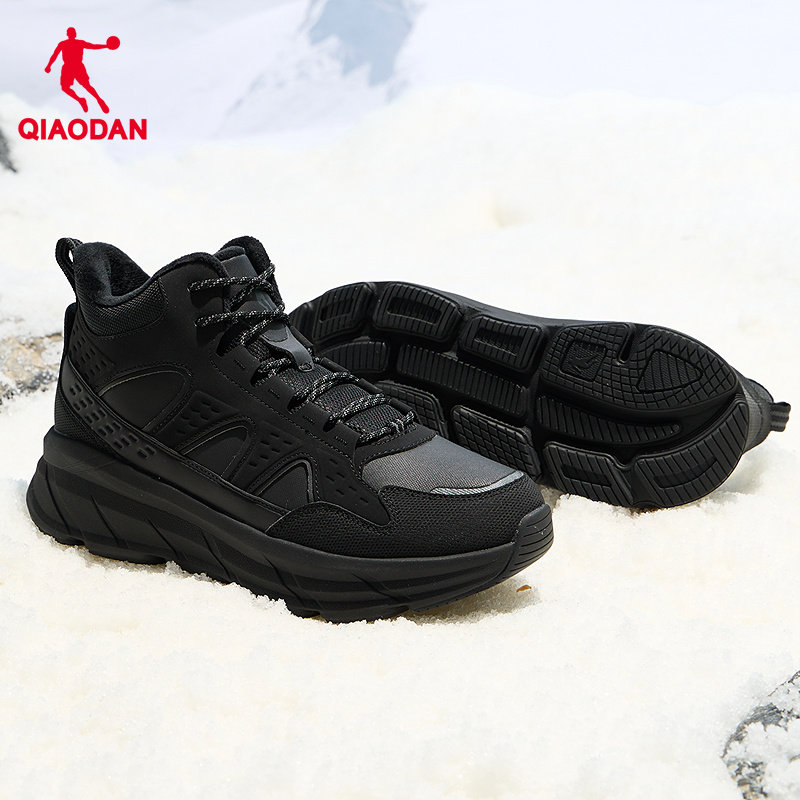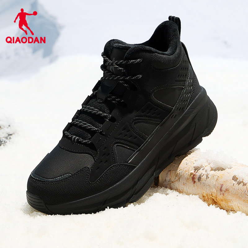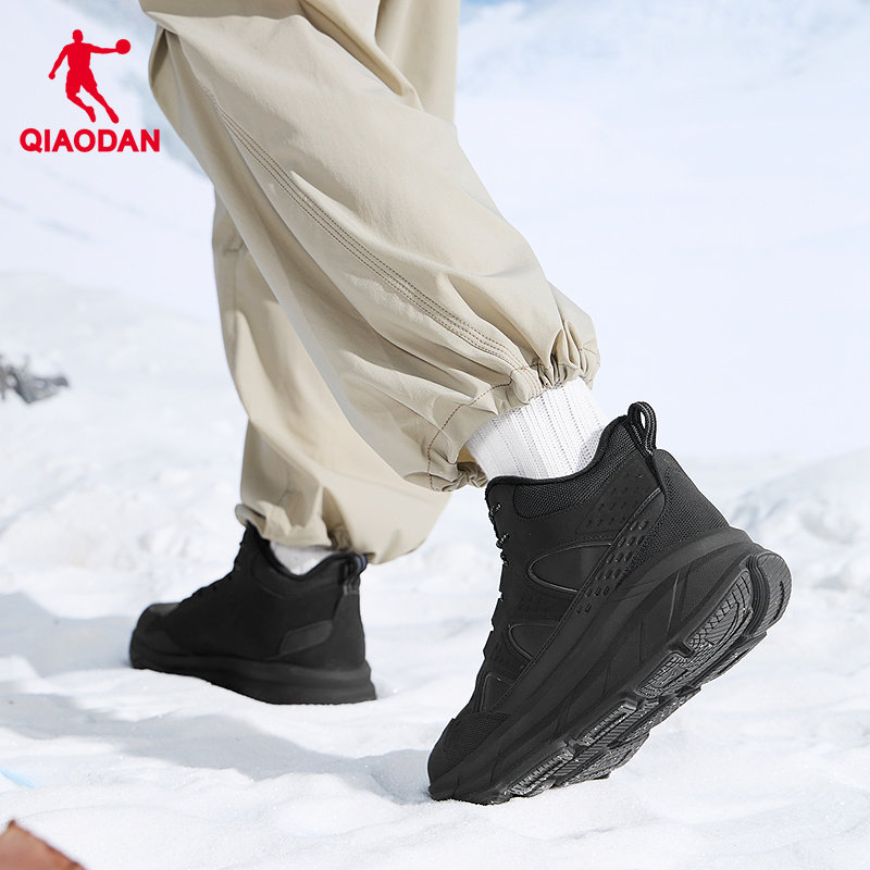 乔丹高帮加绒黑色登山鞋男冬季新款革面防水轻便爬山户外运动棉鞋