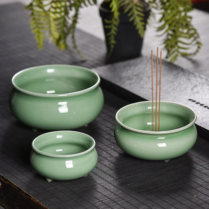 青瓷佛具三足炉室内供奉线香道炉