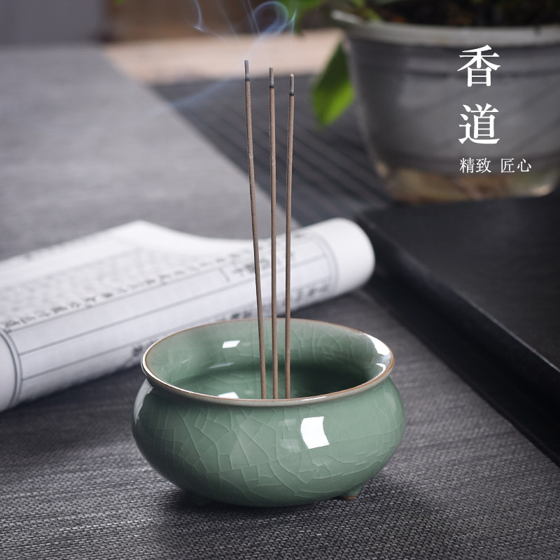 青瓷佛具三足炉上香小香炉家用供奉线香陶瓷香薰炉供佛香火插香炉