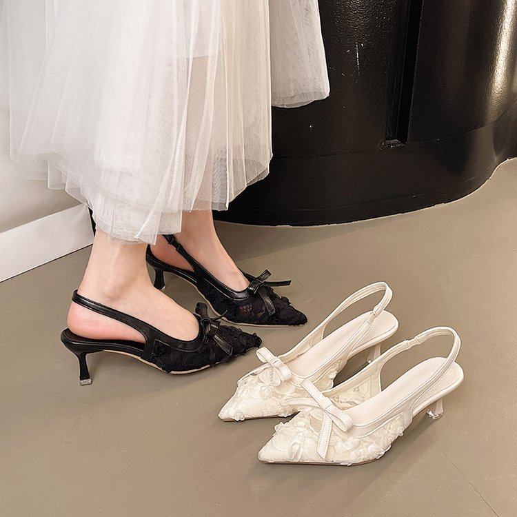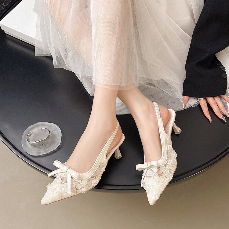 2025夏季新款蝴蝶结仙女风花瓣尖头平底包头凉鞋浅口女鞋子配裙子