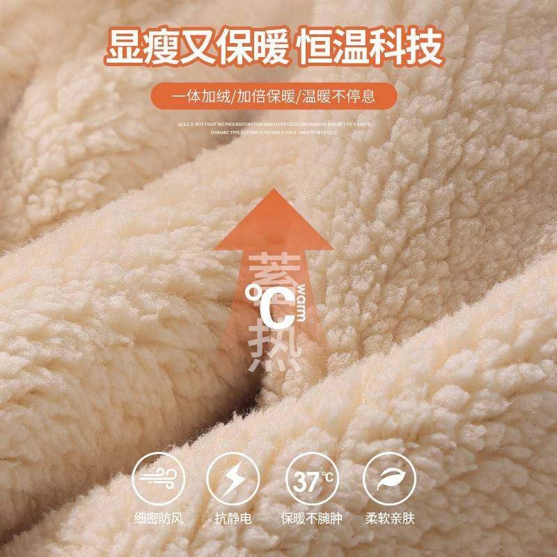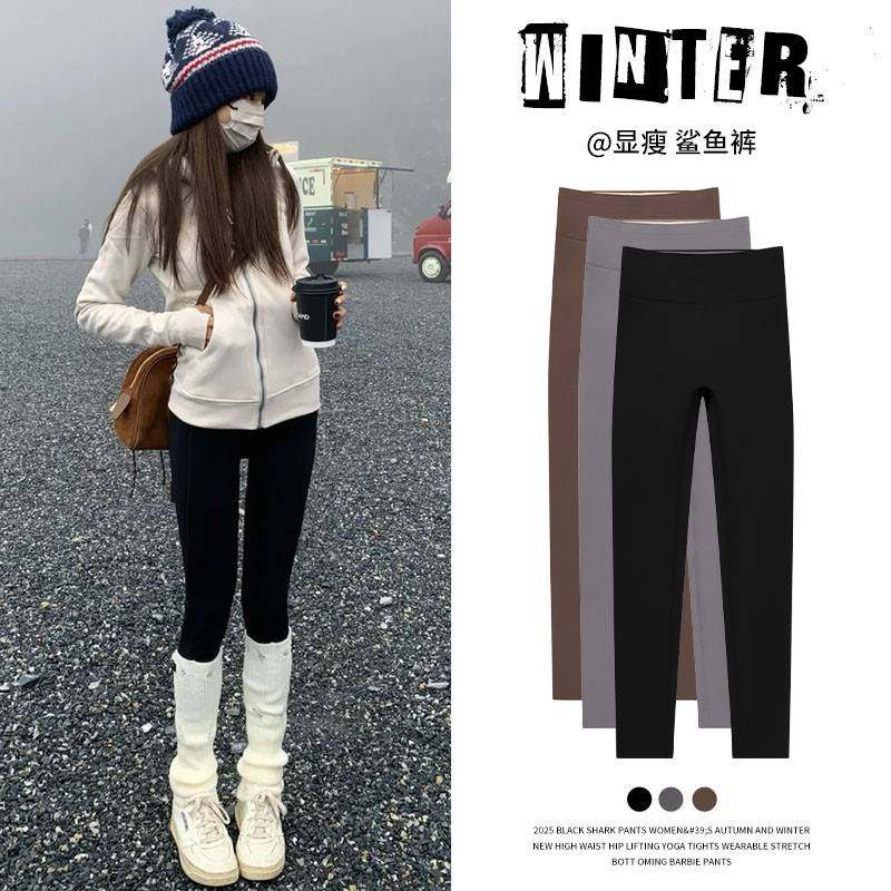 黑色羊羔绒鲨鱼裤女2025新款冬加厚紧身保暖瑜伽裤外穿加绒打底裤