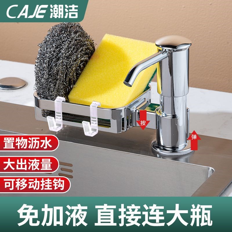 潮洁厨房皂液器置物架p家用水槽洗洁精压取器洗菜盆加长管按压器