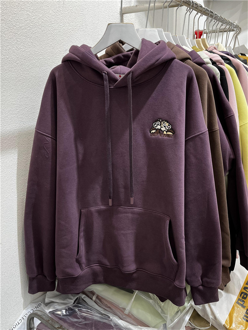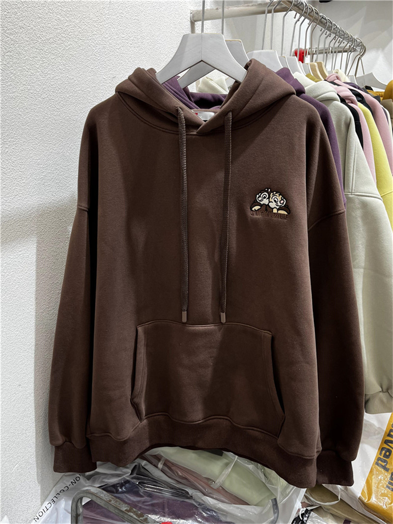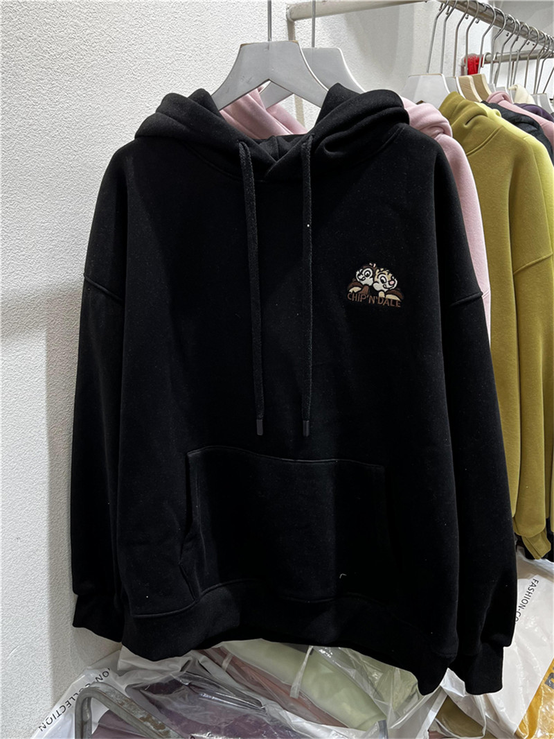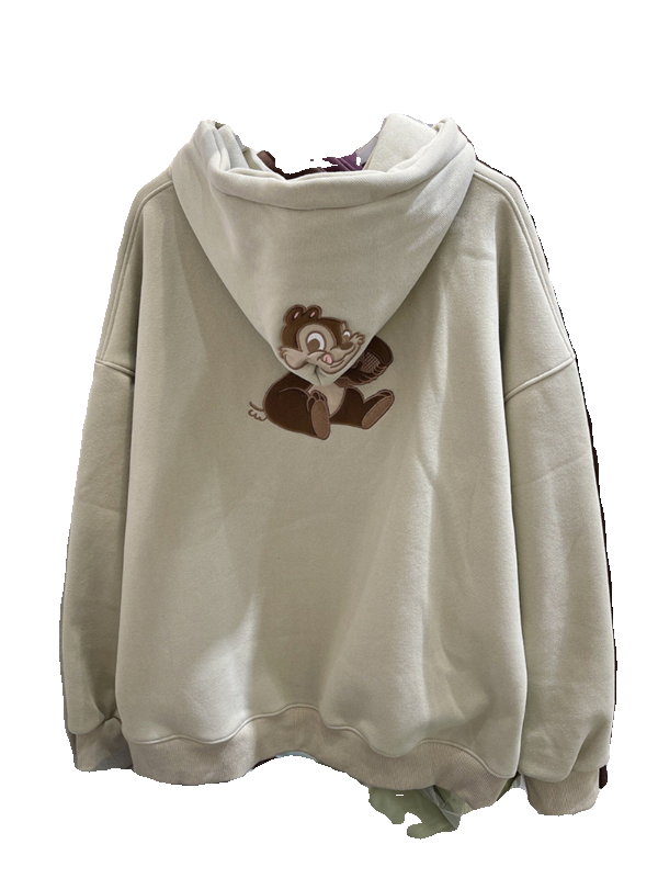 2023冬新款韩版宽松百搭前后刺绣松鼠加绒加厚连帽套头长袖卫衣女