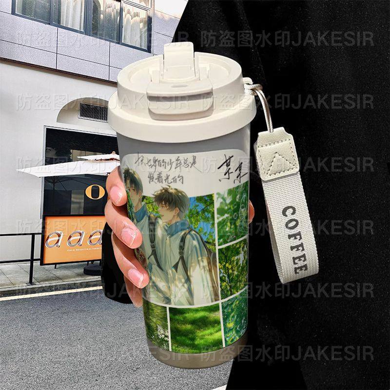 某某江添盛望动漫保温杯不锈钢学生高颜值吸管双饮大容量咖啡水杯