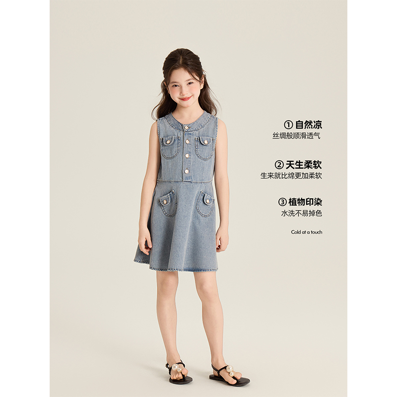 Amybaby女童裙子夏季2025新款夏日凉感复古百搭无袖牛仔连衣裙