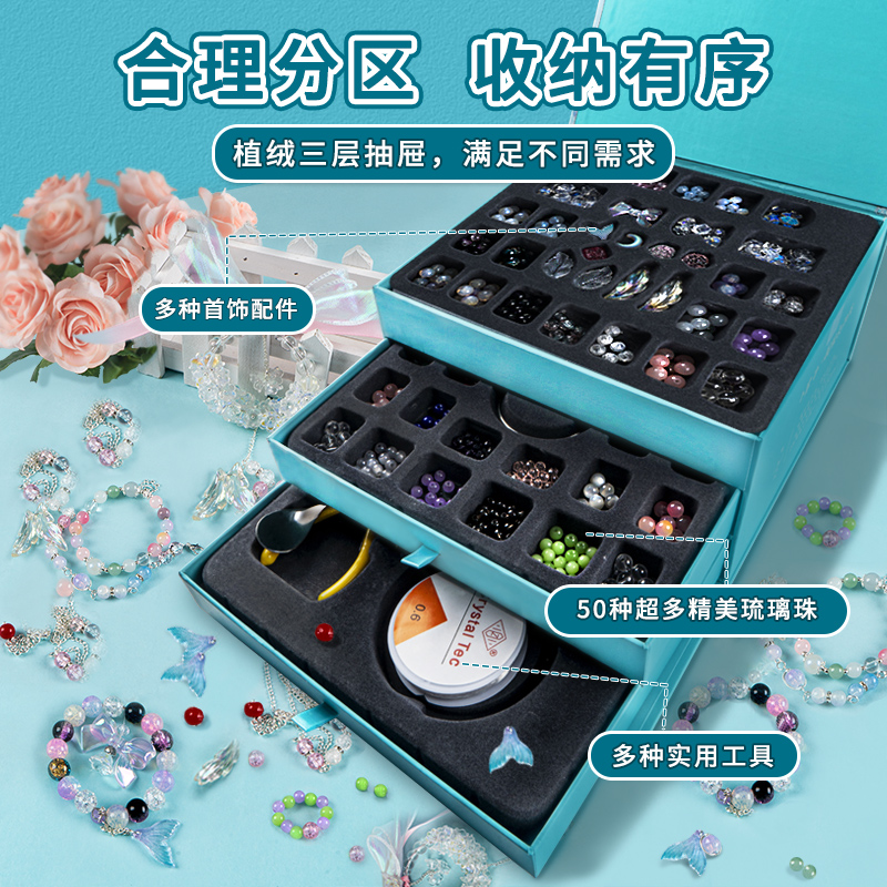 儿童diy手链串珠手工材料首饰盒3女孩生日六一礼物穿珠子女童玩具