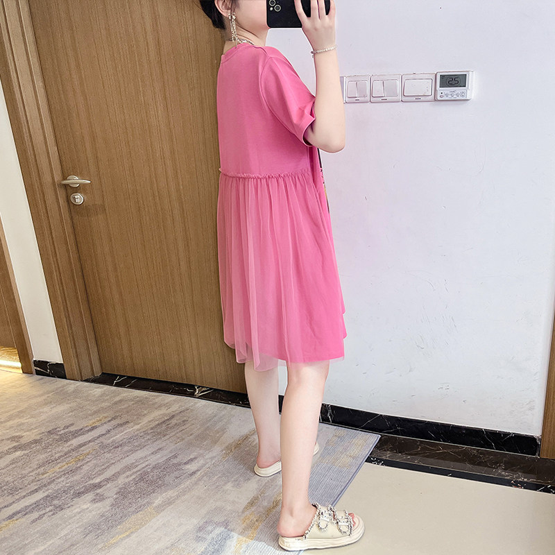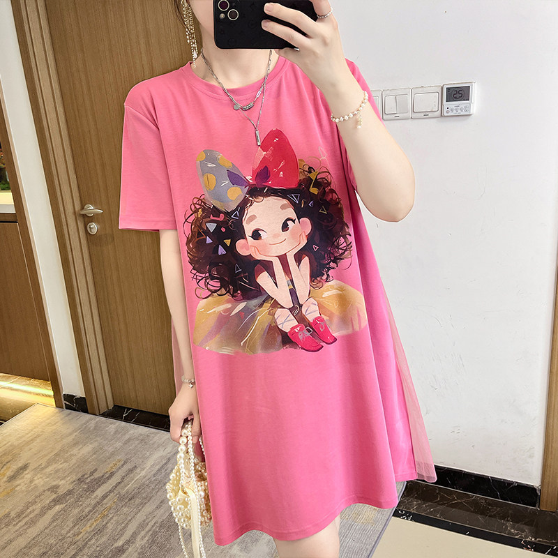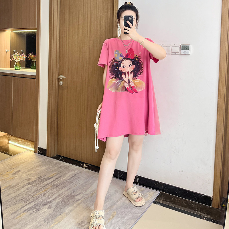 粉色印花连衣裙女夏季欧洲站今年流行T恤裙子大码胖mm遮肚子休闲