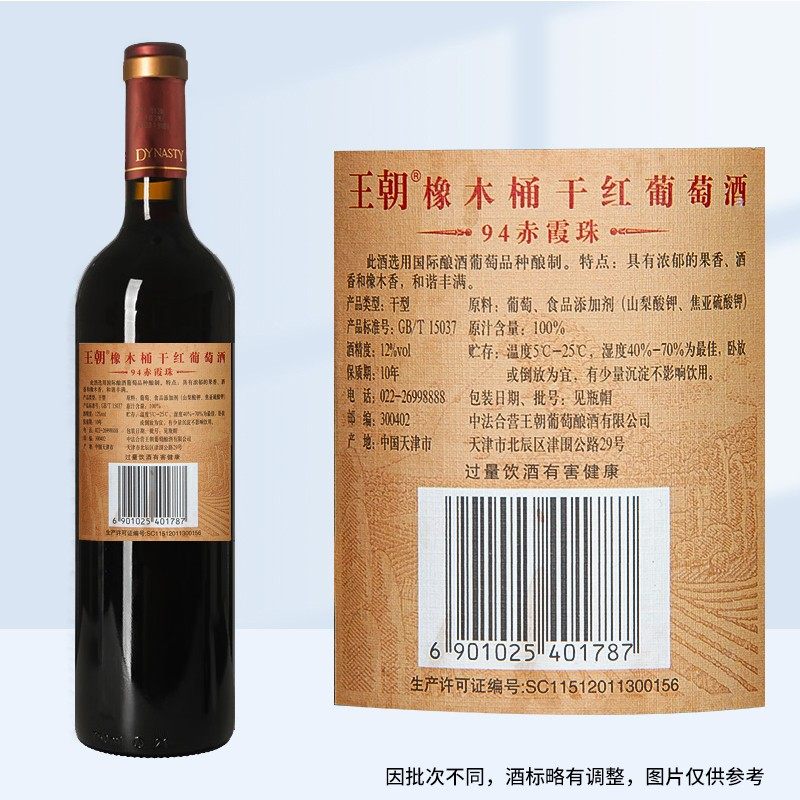 王朝橡木桶94赤霞珠干红葡萄酒整箱750ml*6正品爆款热销热红酒