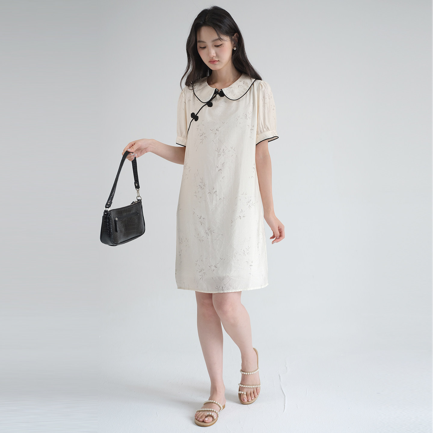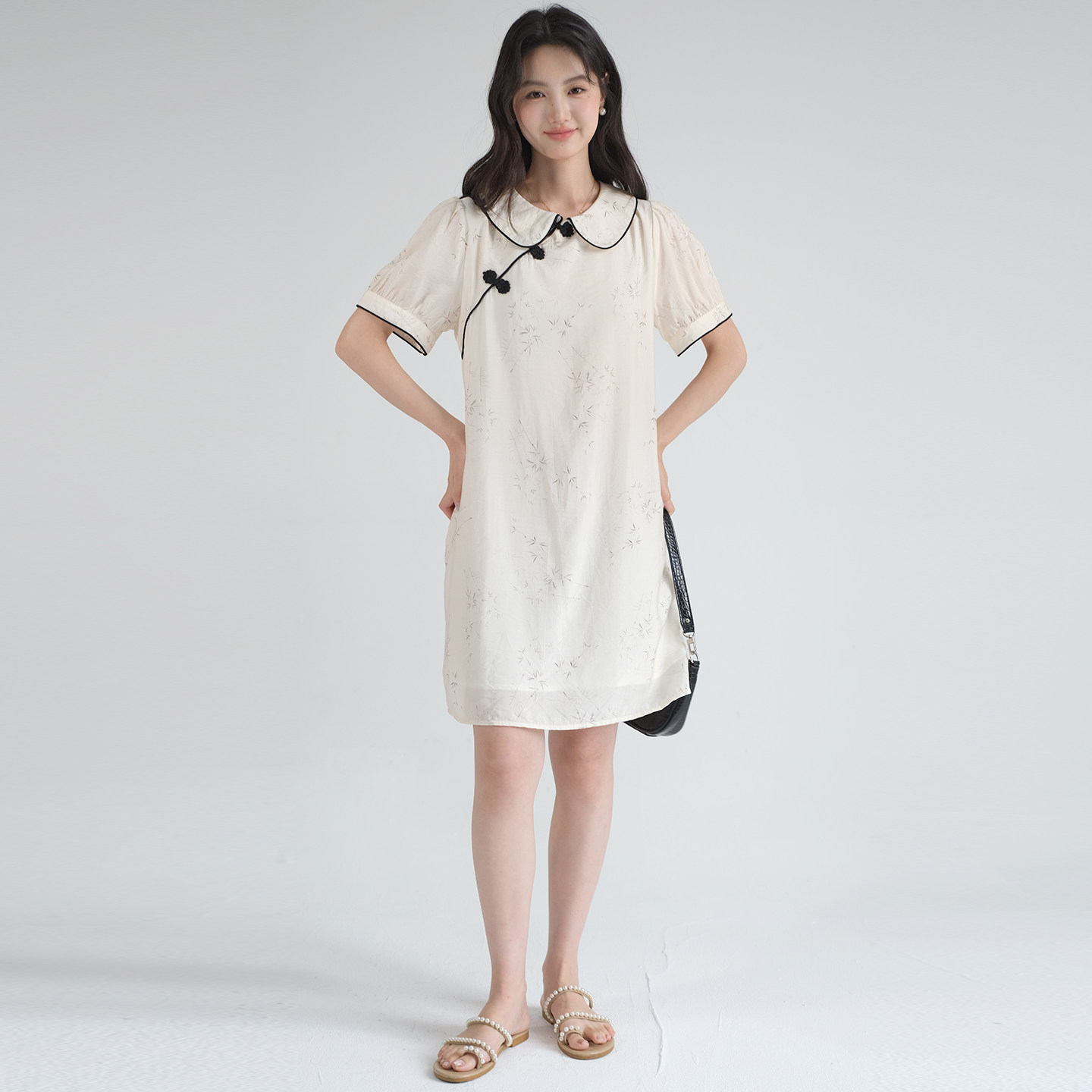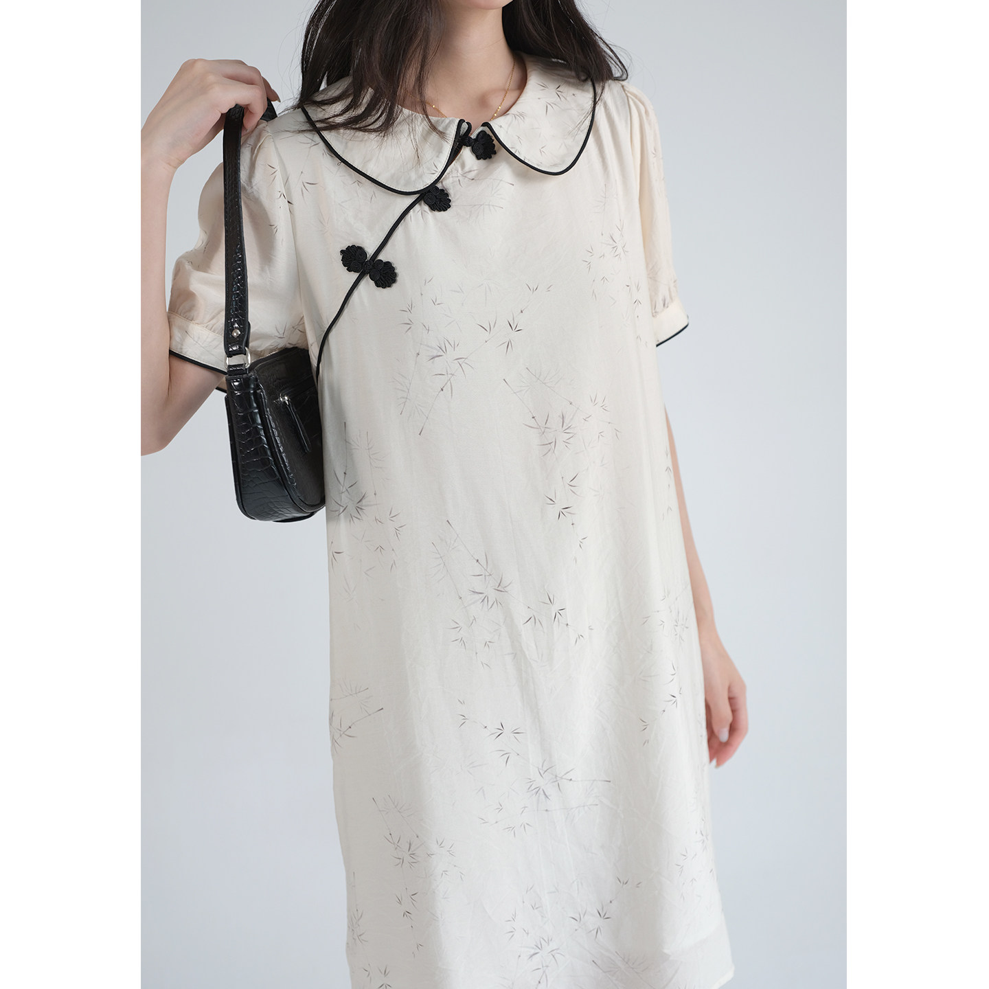 蓝若水新中式连衣裙国风盘扣裙子