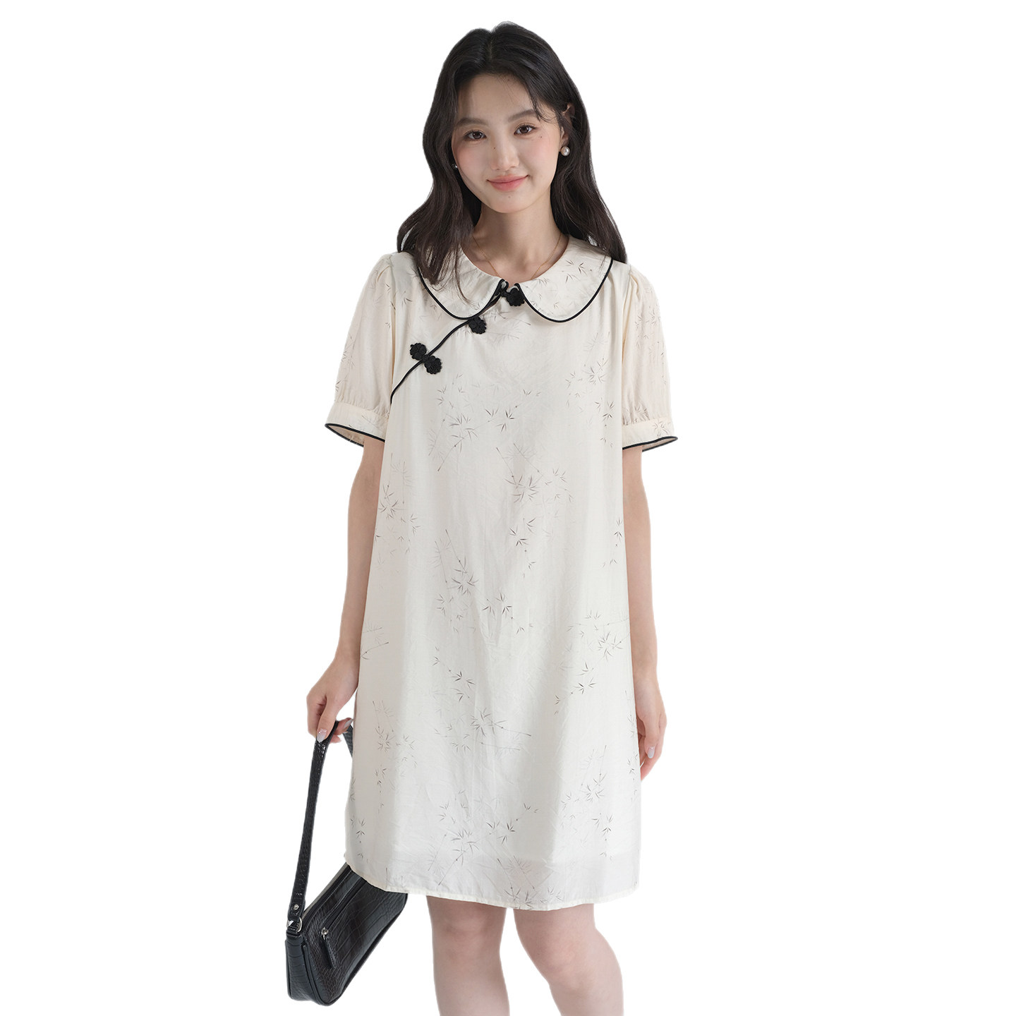 蓝若水大码女装2026夏新款斜襟盘扣翻领连衣裙胖MM改良旗袍碎花裙