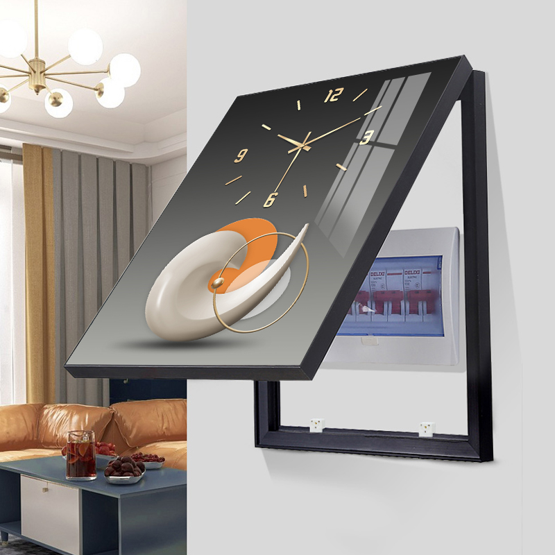 新品销电表箱装饰画带钟表t竖款时钟竖版配电箱遮挡挂画开关盒弱