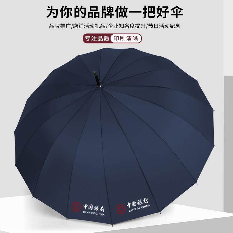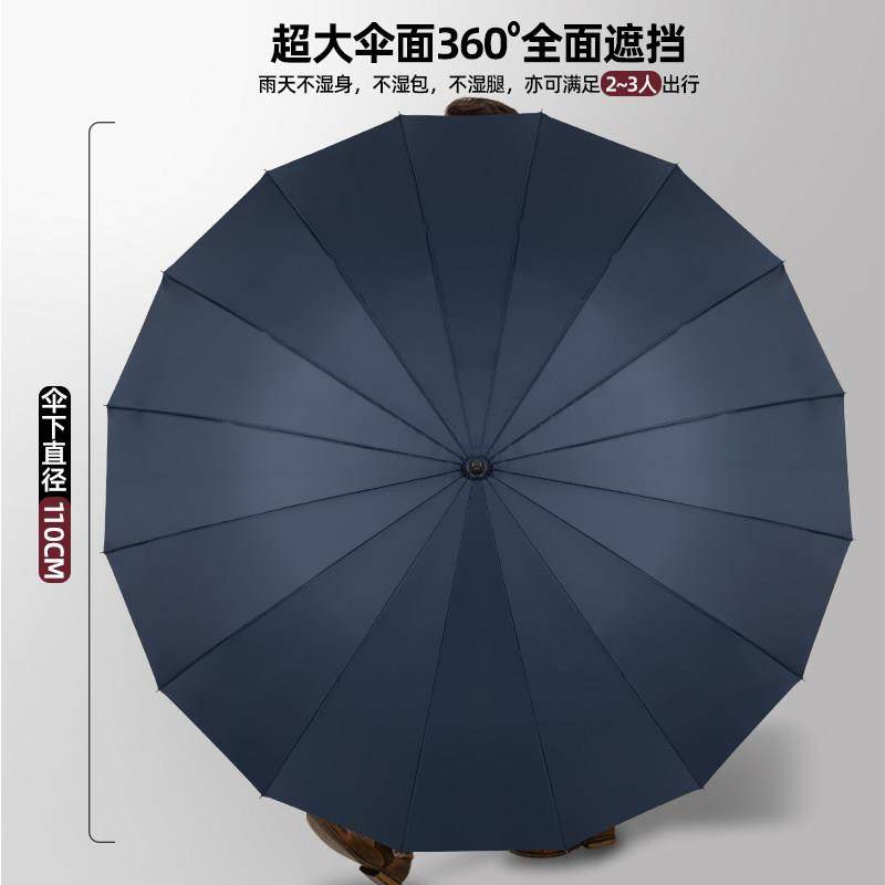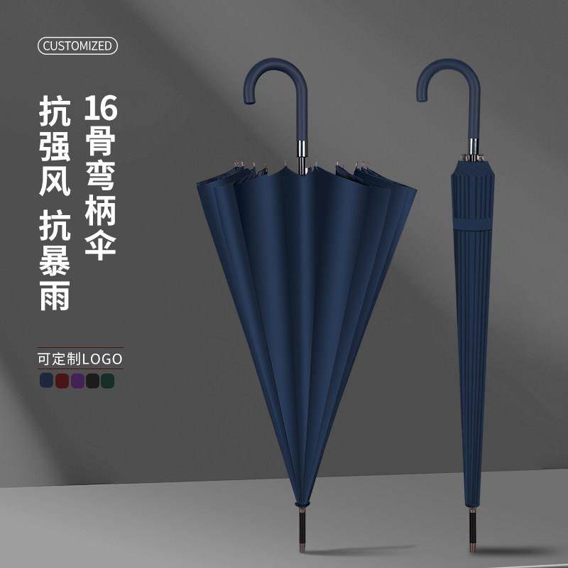 16骨雨伞可定制logo印广告女双人大号长柄男士暴雨专用伞配色弯钩