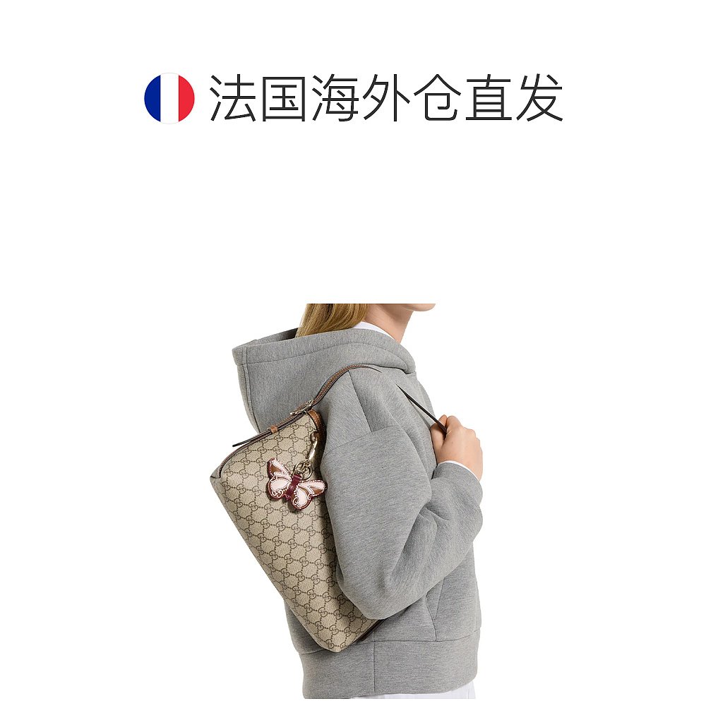 自营欧洲直邮GUCCI古驰 GG Emblem小号米色拼棕色徽标印花单肩包