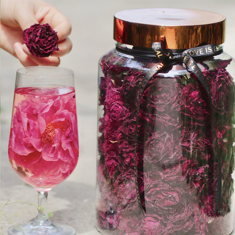 云南墨红玫瑰无熏硫花冠茶玫瑰花茶新花重瓣非冻干大朵140克/瓶装