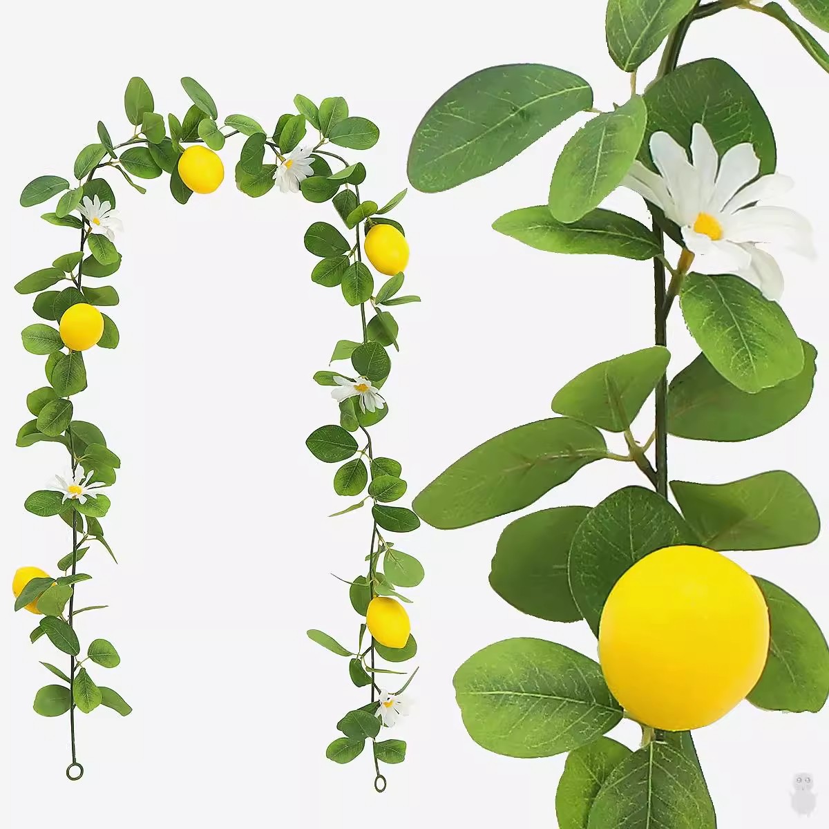 墙面挂饰彷真绿色植物人造柠檬藤条装饰家居餐桌气氛布置假花藤蔓
