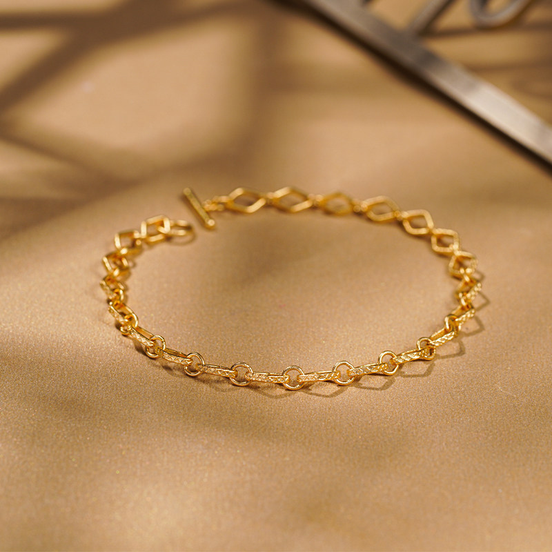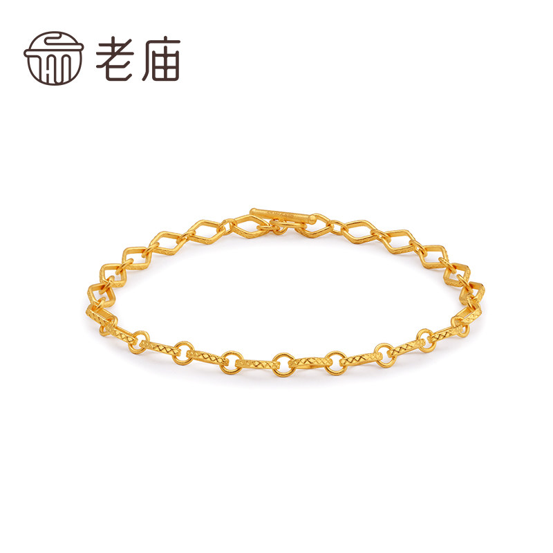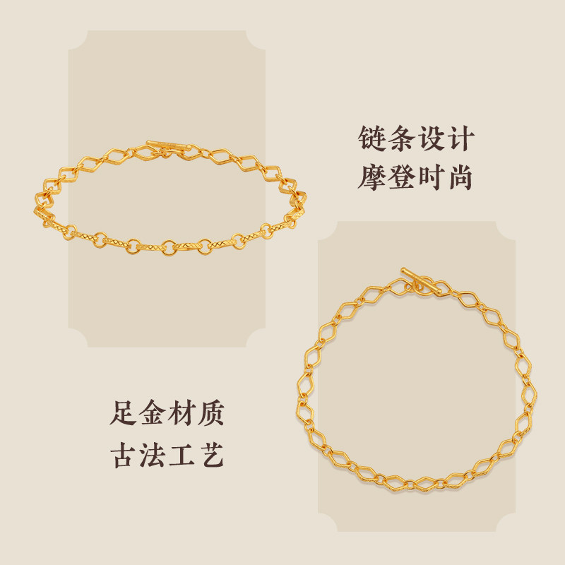 老庙黄金古法金古韵优品时尚链条足金手链花纹官方正品(多退少补)
