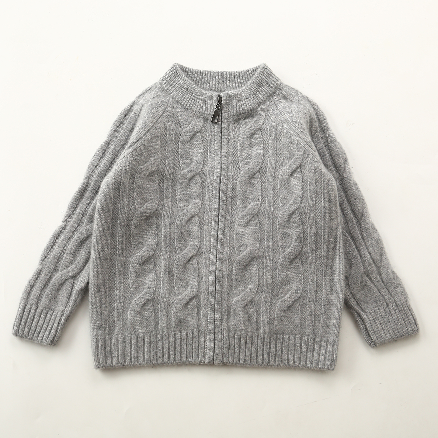 洪叶云台三股100%纯山羊绒衫男童开衫女童毛衣拉链外套儿童羊绒衫