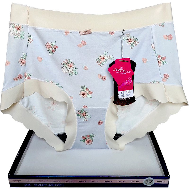 彩田花仙子内裤女印花无痕边中腰平脚包臀印花莫代尔棉21997年轻