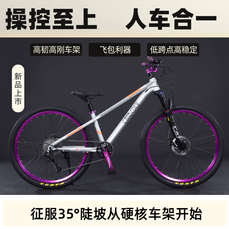 千百鹿土坡山地车自行车炸街花鼓油刹变速越野120响白胎硬尾整车