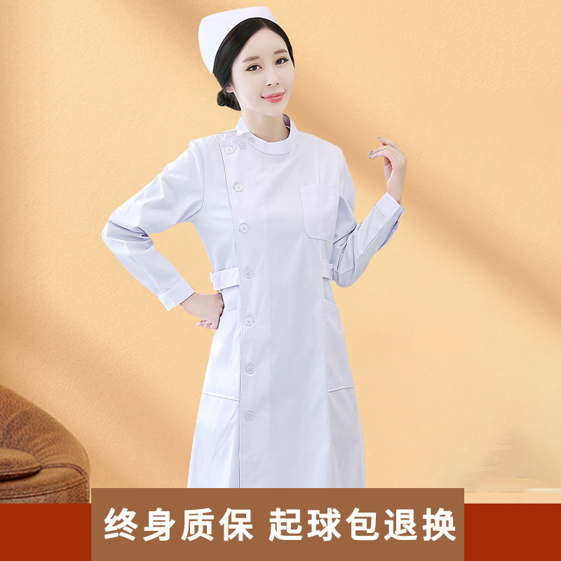 护士服女长袖白色冬季外套圆白大褂装娃娃领短袖药店工作制服偏襟