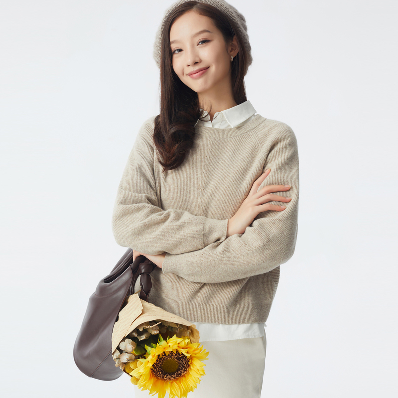 布景羊毛衫女冬季新品简约条纹织花圆领套头全羊毛针织衫1603