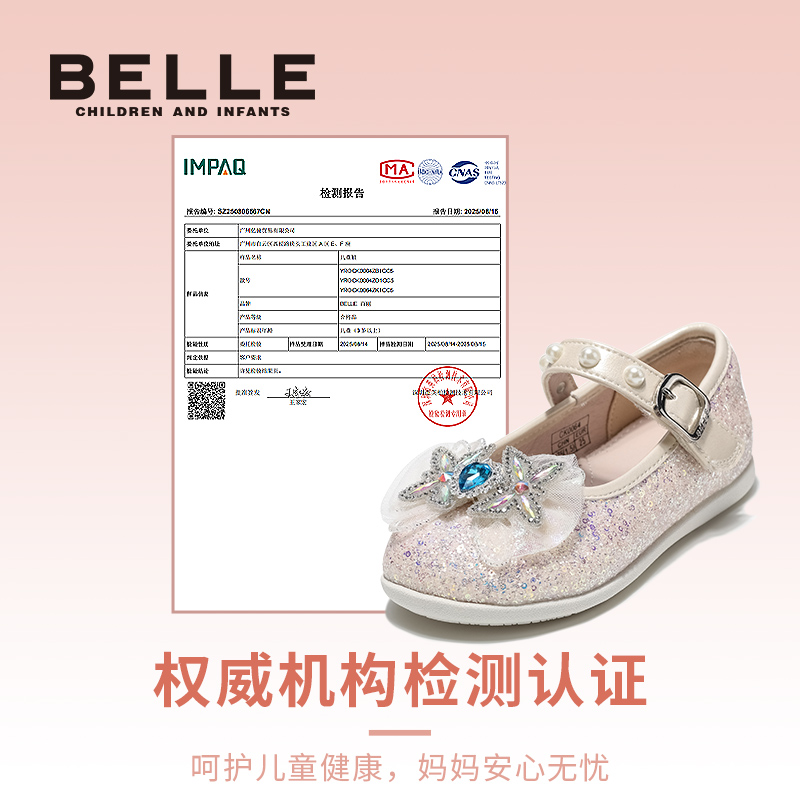 百丽童鞋女童水晶公主鞋秋季新款小女孩时尚单鞋儿童宝宝学步鞋子
