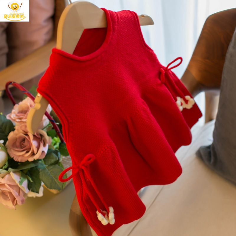 女童针织马甲背心裙秋冬宝宝毛衣连衣裙婴儿童红色毛线公主裙子新