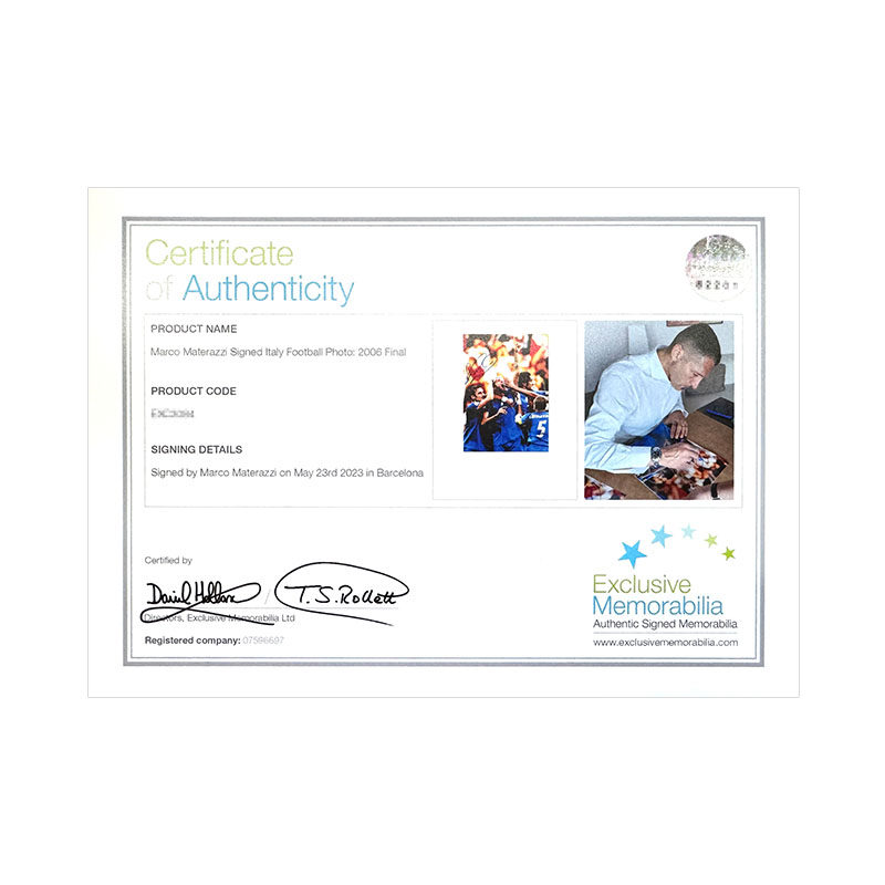 马特拉齐|2006年决赛亲签照片【含EM证书】正品收藏球迷礼物带框