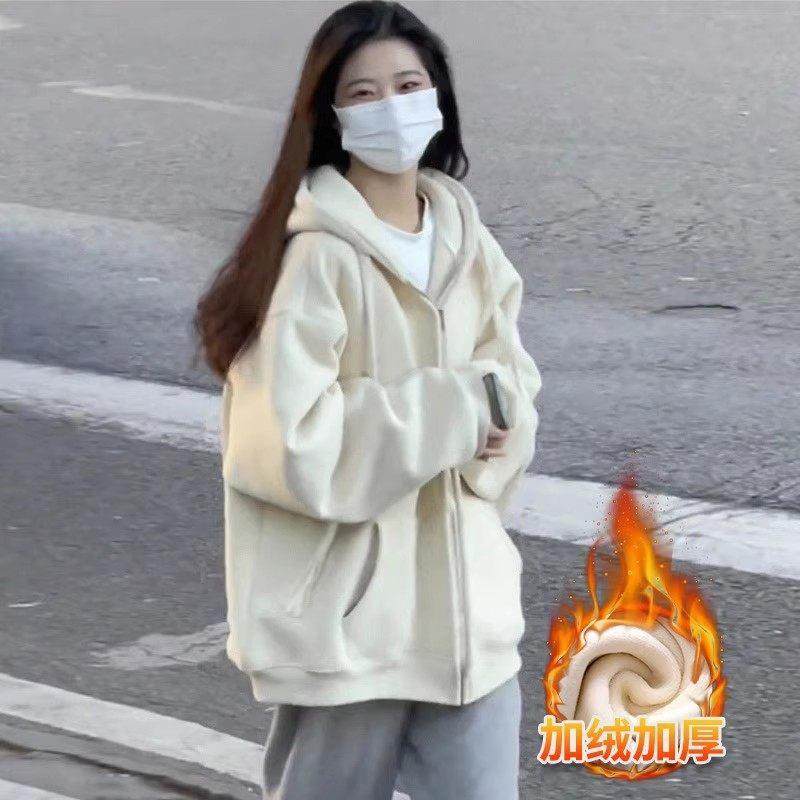 秋冬季连帽开衫卫衣少女初高中学生2025新款加绒加厚保暖上衣外套